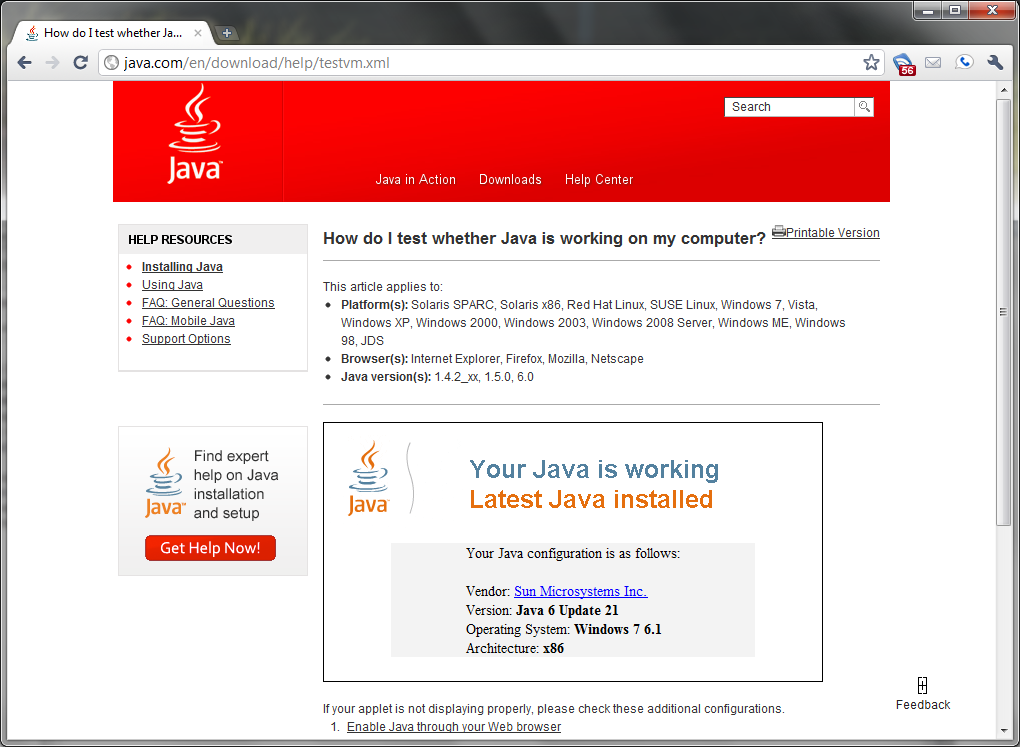 By implication Oracle/Sun is using the C/C++ optimizing compiler from Visual Studio 6 (1998) and Visual Studio .NET 2003 to build the 32-bit version of Java. Holy cow those are 5 and 3 versions back from the current compilers and between 12 and 7 years old. I’m pretty sure that Visual Studio 6 is no longer supported and unfortunately both predate the side-by-side C runtime distribution system that starts with Visual Studio 2005.